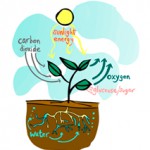 …photosynthesis captures the energy from the sun and stores it in our food (the calories we eat): energy + water + CO2 in, oxygen out